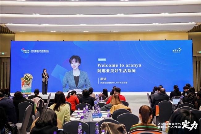 演讲环节的最后,阿那亚运营板块人力行政总经理邵洁女士带来了《Welcome to aranya 阿那亚美好生活系统》的精彩分享,她系统介绍了阿那亚从秦皇岛海边项目起步,十年间发展为涵盖酒店、民宿、商业、文化、物业等多业态的“美好生活系统”。