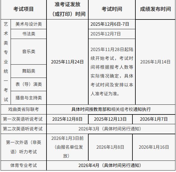 2026年北京高考相关考试安排