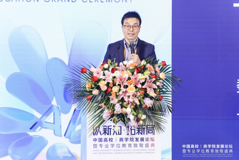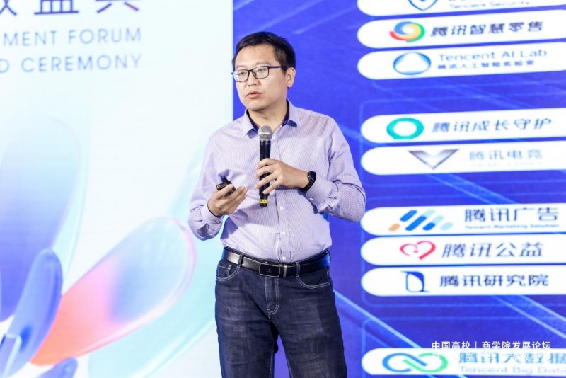 北京航空航天大学经济管理学院党委书记郑海涛发表了题为“高质量案例建设如何赋能中国特色的商科发展”的主题报告;腾讯教育解决方案副总经理姚士佳发表了题为“腾讯教育在AI新时代下的创新实践”的主题报告。