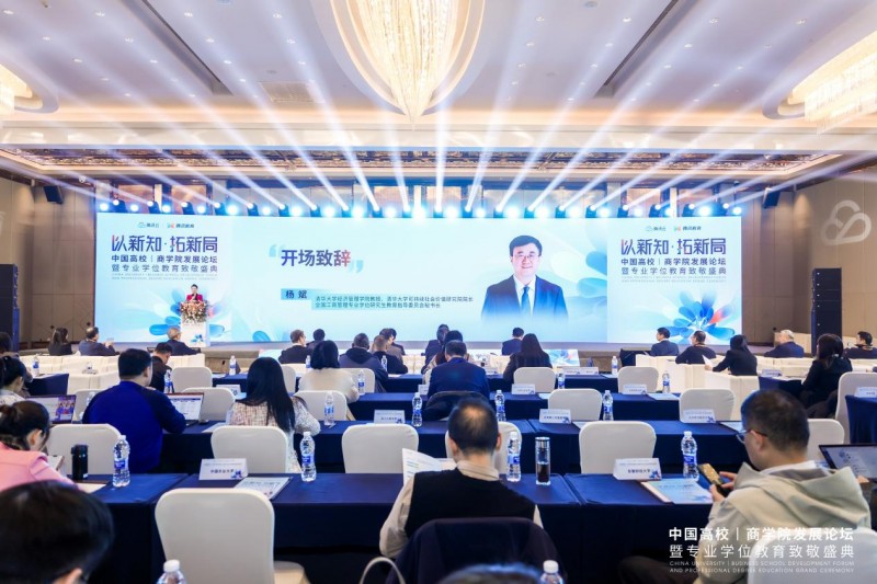 11月12日,中国高校|商学院发展论坛暨专业学位教育致敬盛典成功举办。本次论坛以“以新知·拓新局”为主题,聚焦人工智能浪潮下商学教育的转型挑战与发展机遇,来自全国80余所高校商学院院长、副院长、项目主任、项目招生负责人以及腾讯等科技企业代表出席会议,共同探讨中国商科教育创新发展的未来路径。