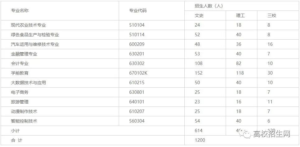 面向全省16个州市招收高职(专科)学生1200人,学院实行小班教学制,预计开设50个教学班,具体情况见下表: