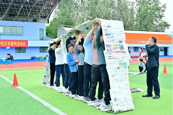 运动场上,师生同场竞技,热情高涨。同学们朝气蓬勃,奋勇争先;老师们精神抖擞,全情投入。赛场内外,加油声、欢呼声、笑声此起彼伏,汇成了一曲激昂和谐的青春与奋斗交响乐。各支队伍在比赛中不仅展现了良好的体育风尚,更在实践中深刻体会了红色文化所蕴含的团结、奉献、智慧、勇敢与坚持的内涵。