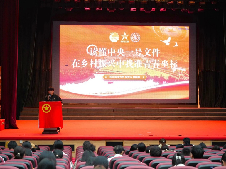聚焦2026年中央一号文件,校青马班成员为同学们系统解读了农业新质生产力、粮食安全、常态化精准帮扶等关键词,并介绍了四川农业大学在水稻、玉米、小麦等种业攻关中取得的突破性成果。